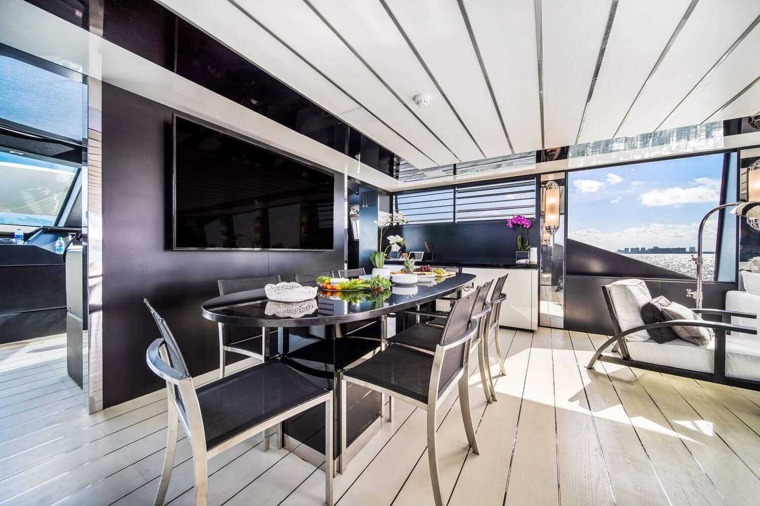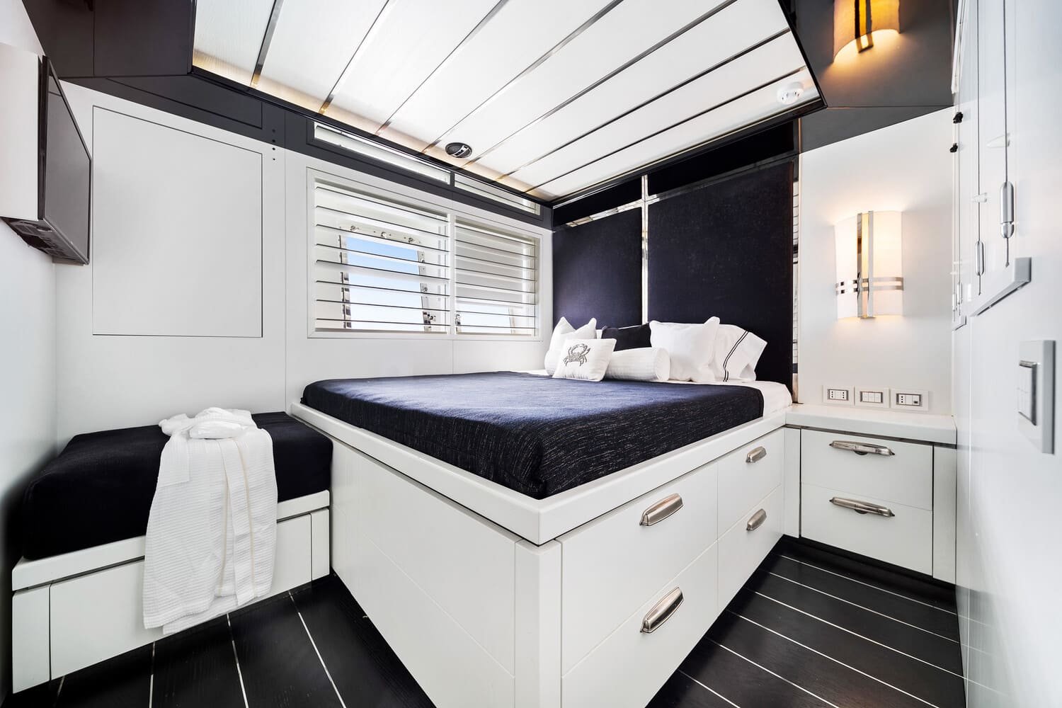 This 120-foot Technomar motor yacht is a striking expression of high-performance luxury, seamlessly combining speed, sophistication, and modern Italian design. Built for guests who value both style and efficiency, she cruises comfortably at impressive speeds, allowing for effortless island hopping and the freedom to maximize every moment of your itinerary.Her interiors, designed by the renowned Italian studio Novulari, feature a refined minimalist aesthetic highlighted by soft, light tones and elegant wood accents. The result is a bright, contemporary atmosphere that feels both luxurious and welcoming, perfectly suited for relaxation between adventures.Outdoor living is a defining element of the experience on board. The innovative sun deck offers an expansive open-air lounge ideal for sunbathing, socializing, or simply enjoying panoramic views while underway or at anchor. Whether acquiring a golden suntan or enjoying cocktails at sunset, this space serves as a centerpiece for life on board.The yacht comfortably accommodates 12 guests for day charters and 11 overnight guests in five well-appointed staterooms, including a full-beam master suite, two king VIP cabins, and two twin guest cabins—each with private en-suite facilities. This versatile layout makes her an excellent choice for families, groups of friends, or luxury-focused getaways.Combining speed, elegance, and intelligent design, this 120-foot Technomar delivers a refined charter experience where performance meets comfort, and every journey is as thrilling as it is luxurious.