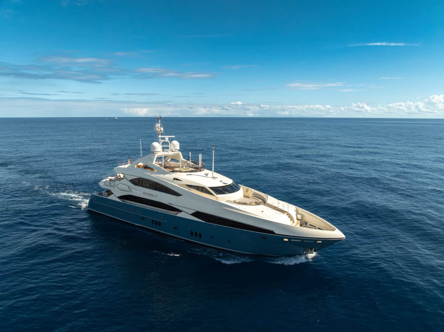 Introduced by DMA Yachting, Natural 9 is a striking 130’ Sunseeker motor yacht that embodies timeless elegance, modern comfort, and exceptional onboard living. Delivered by the renowned Sunseeker shipyard and enhanced by an elegant refit completed in 2024, she offers a refined superyacht experience ideal for both relaxation and entertaining.Natural 9’s sleek profile and expansive outdoor areas create an inviting atmosphere for socializing at sea. Her generously sized aft deck flows seamlessly into the well-appointed main salon, forming a perfect indoor-outdoor living space. The main salon serves as the heart of the yacht, featuring comfortable seating, entertainment areas, and a warm, sophisticated ambiance ideal for gatherings throughout the day and evening.Designed with guest comfort in mind, Natural 9 accommodates up to 11 guests in five spacious cabins, each thoughtfully arranged to provide privacy, tranquility, and a restful retreat. The intelligent layout ensures an effortless balance between social areas and private spaces, making her ideal for families or groups seeking both connection and relaxation.Outdoor living is further elevated with a hot tub, perfect for unwinding while enjoying panoramic views, as well as ample lounging areas for sunbathing or sunset cocktails. For those seeking adventure, a Jet Ski adds excitement to the charter experience, offering fun-filled moments on the water.Cruising year-round in the Bahamas, Natural 9 combines luxury, comfort, and versatility in one exceptional superyacht. Whether hosting elegant gatherings or enjoying serene escapes at anchor, she delivers an unforgettable charter experience defined by style, space, and sophistication.