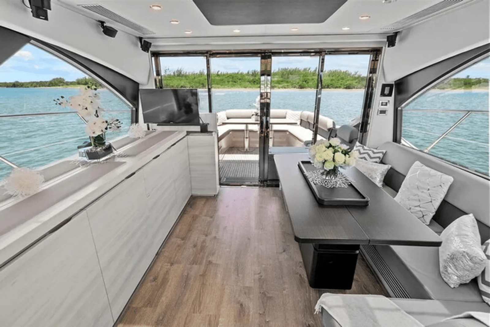 The Azimut 55S embodies the spirit of innovation and Italian design, offering a dynamic yachting experience defined by speed, comfort, and refined elegance. Her sleek, aerodynamic profile hints at her impressive performance, while expansive windows flood the interior with natural light, creating a seamless connection between inside and out.Designed for both excitement and relaxation, the Azimut 55S features state-of-the-art technology and advanced construction elements that elevate every journey. Whether cruising along the coast or anchoring in crystal-clear waters, she delivers a smooth, confident ride and an unparalleled sense of freedom.Outdoor living takes center stage on board. At the bow, a stylish open-air lounge invites guests to enjoy cocktails under the sun or toast as the sky transforms at sunset, setting the perfect scene for unforgettable moments at sea. The stern cockpit is a true highlight—an expansive terrace ideal for sunbathing, relaxing to the rhythm of the waves, or easily transforming into a dining area for casual lunches or elegant dinners with friends.Inside, the Azimut 55S offers a welcoming and contemporary atmosphere, designed to maximize comfort and functionality without sacrificing style. Every space reflects Azimut’s commitment to quality craftsmanship and intelligent design, making her an excellent choice for day charters, celebrations, or extended cruising.The Azimut 55S is more than a yacht—it’s an invitation to experience the sea in style, where innovation, luxury, and relaxation come together for an unforgettable charter experience.