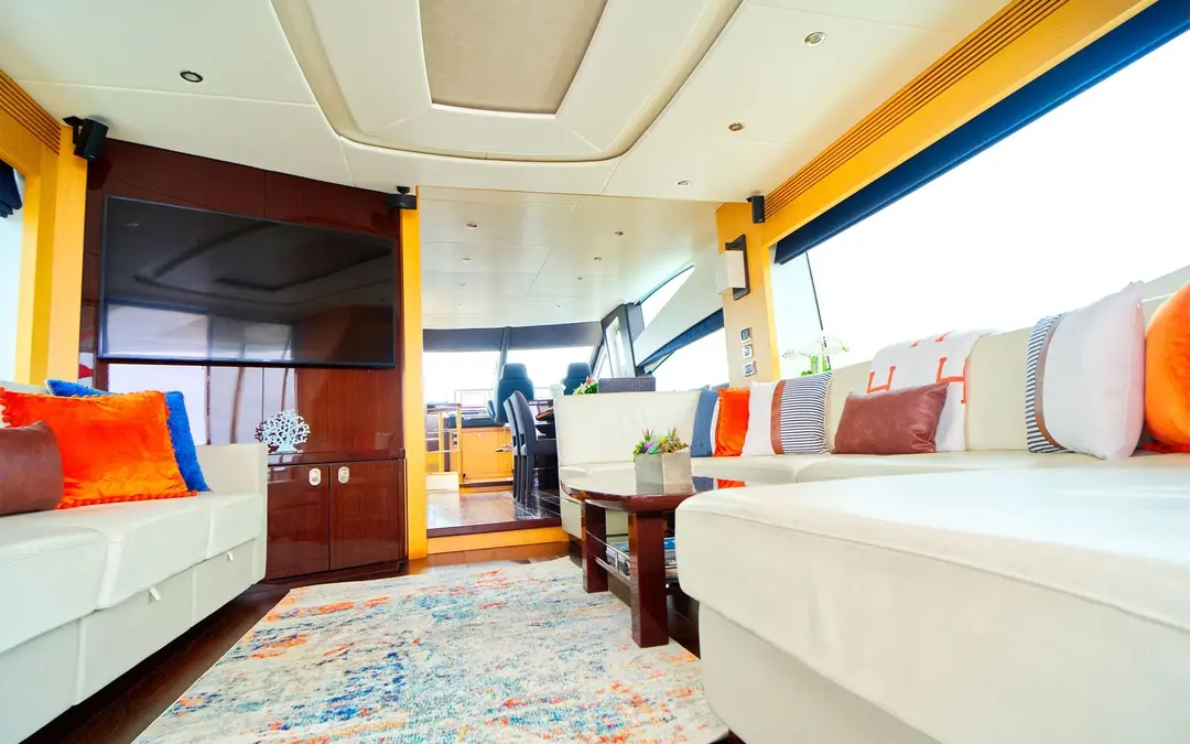 The 75’ Sunseeker is a stunning yacht that seamlessly blends modern elegance with timeless design, delivering an exceptional onboard experience that rivals top-tier European standards.Spanning three spacious decks, this yacht offers an ideal layout for both relaxation and entertaining. The main deck features expansive panoramic windows that flood the interior with natural light, highlighting a beautifully designed dining area and a separate, inviting lounge space.Below deck, she comfortably accommodates up to 8 guests in four well-appointed cabins, including three double suites and one twin cabin, all designed with comfort and privacy in mind.Outdoor living is where this yacht truly shines. The generous exterior spaces create a true entertainment playground, perfect for socializing, sunbathing, and enjoying life on the water.Key features include:Tender for easy shore access